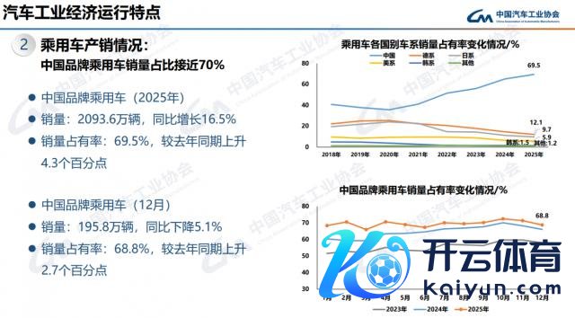 值得留神的是,恰是在出口的加合手下,加上国内阛阓需求在计策的刺激下开释,2025 年 2025 年乘用车的产销才能双双初度最初 3000 万辆,其中自主品牌的销量就达到 2093.6 万辆,在合座乘用车阛阓的占比达到 69.5%,比 2024 年同期加多 4.3 个百分点。