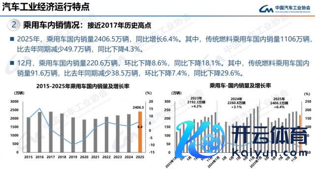 具体来看,2025 年国内乘用车的销量同比增长 6.4% 至 2406.5 万辆,这一数字荒谬接近 2017 年的历史最高位。其中,传统燃料乘用车国内销量为 1106 万辆,比客岁同期减少 49.7 万辆,同比着落 4.3%。