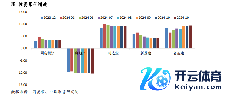 2024年1-11月固定金钱投资累计同比增长3.3%(前值3.4%),本年以来最低值。民间固定金钱投资累计增速下滑0.4%,传统基建投资累计同比增长9.39%。因为开辟更新和维保周期已至等行径开展,铁路投资增速为15%,铁路船舶航空投资累计增速30.6%。924以来,战略积极推动,专项债刊行额度基本上完全使用,大约2万亿,关怀战略后果。