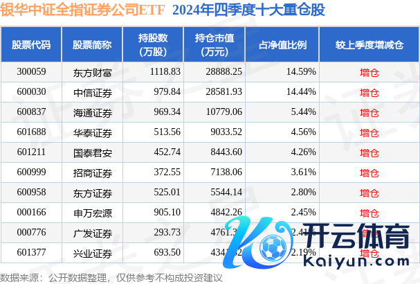 银华中证全指证券公司ETF为指数型-股票基金,字据最新一期基金季报袒露,该基金钞票成就:股票占净值比98.43%,无债券类钞票,现款占净值比1.96%。基金十大重仓股如下: