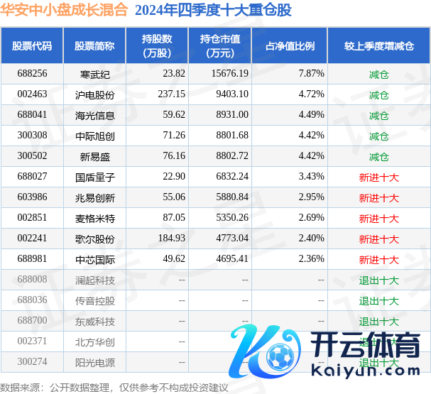 华安中小盘成长搀杂为搀杂型-偏股基金,字据最新一期基金季报露出,该基金钞票设置:股票占净值比86.96%,债券占净值比0.32%,现款占净值比12.8%。基金十大重仓股如下: