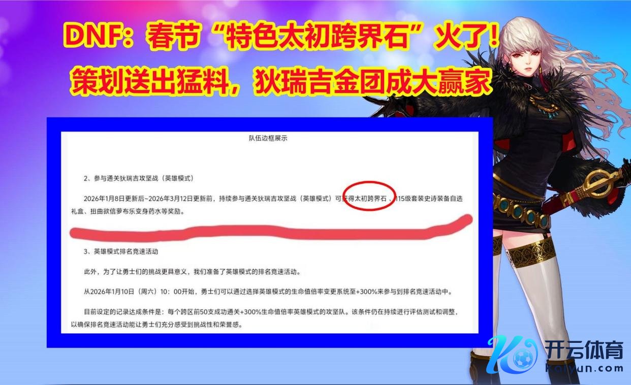 近日国服运筹帷幄梅尔文公布了春节版块的关连音讯,比拟韩服的内容开云体育(中国)官方网站,国服进行了特质更新。主要分为三大方面: (一)省流简讯 ①团本新增狄瑞吉枭雄款式。往时运筹帷幄暗暗摸摸加血,加提神。现时好意思名其曰枭雄款式。 ②国服特质工作均衡,关羽特质减弱,红眼特质加强,这便是国服特质,谁东谈主多就加谁,要不谁氪金? ③国服特质奖励:干涉枭雄款式,会得到太始跨界石,预计国服的金团会更受接待。 总得来说,国服特质更新再次将春节版块的氪金度拉满!率先打枭雄款式,系统皆保举八万多名望值,展望