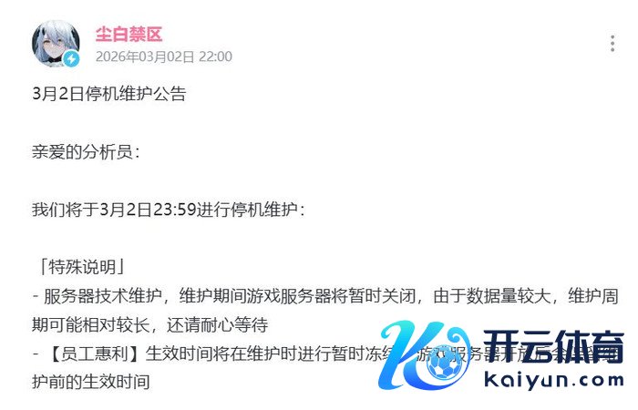 每经记者|张梓桐每经剪辑|余婷婷开yun体育网 3月2日晚,火爆一时的二次元射击游戏《尘白禁区》突发公告,秘书于当日23:59动手停机崇拜,仅以“作事器本事崇拜、数据量深广”为由纰漏领路,未明确任何开服时候,一时候激发游戏圈爱护。 值得一提的是,就在近日,《尘白禁区》曾官宣与中国邮政进行联动,推出线下邮局快闪行为,但因诸多网友反应游戏画面表率较大激发争议,随后相助拒绝。 公开云尔高慢,《尘白禁区》的径直开荒商为金山软件旗下中枢游戏子公司西山居,由其狸花猫职责室孤苦研发刊行。这款曾创造“逆增长遗