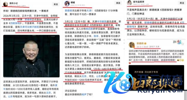 更有酷好的是,3 月 2 日上昼 6 点 -7 点傍边,也便是在郭德纲河北梆子《四郎探母》表演运行前十二个小时傍边,也曾有一批自媒体发文宣传:郭德纲河北梆子《四郎探母》高朋满座一票难求,十七分钟售罄,黄牛涨价上千元,郭德纲一启齿就镇住全场 ...... 活生生上演了一幕穿越大戏,被网友们戏谑为"穿越式营销"。