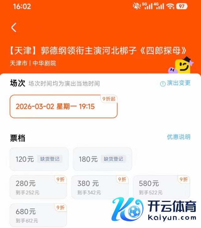 无迥殊偶,2026 年 3 月 2 日,郭德撮要衔主演河北梆子《四郎探母》,表演场地亦然在天津中华剧院。